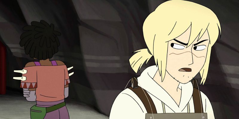 Episode 8 was the final episode in the second batch of episodes released in Book 3 of Infinity Train. In this episode, Grace wakes up in the cave and Hazel laughs at her, telling her she drooled on her while she slept. They laugh and Grace asks how long she’s been awake. Hazel tells Grace that she had bad dreams and has been up for a while now. Hazel rolls over to her bag of belongings and realizes her hand is shifted into the turtle. She quickly realizes she can shift it back and forth. Grace tells her she can’t let Simon see. They suddenly realize Simon isn’t there. A flying snake begins to crawl into the cave. As it goes to strike Grace and Hazel, Amelia hits it with a shovel, saving them. Grace picks up a rock telling her to stay away. Amelia puts down the shovel and reaches her hand out to officially introduce herself. While making eggs, Amelia tells Grace she normally wouldn’t ask for their help, but she needs to figure out the anomaly. As she asks for help, Grace notices Amelia’s number goes down. She tells her and Amelia says with her number so high, a small change doesn’t really make a dent. Amelia serves Hazel the eggs and tells her she reminds her of Alrick. Hazel asks who that is, and Amelia tells her that he was her person and she lost him. Hazel runs over and gives her a big hug telling her that she likes her. Amelia quickly says it’s time to go. Grace says not without Simon and Amelia, annoyed, says fine.