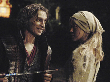 Before viewers could believe the worst was over, Ella suffered a cramp. Her obliging husband, Prince Thomas, left to fetch her water from the well. Again, I’m not really digging this rather helpless heroine. She causes more trouble then she seems to be worth. And as if to prove my point, while fetching her water, Thomas disappeared. Just vanished. And Rumplestiltskin, in this creepy nursery song voice, told Ella, “All magic comes with a price.” He then informed Ella that until she gives him the baby, she will never see her beloved Thomas again. This is actually great news for viewers. With each passing episode we see how the writers are adding threads they will get to tug on in future episodes. One of my biggest worries for this show was the sustainability of a fairy tale long-term. But that concern is lessening with each passing installment.