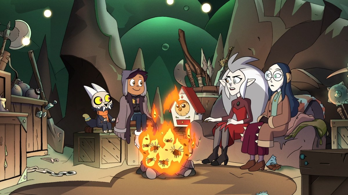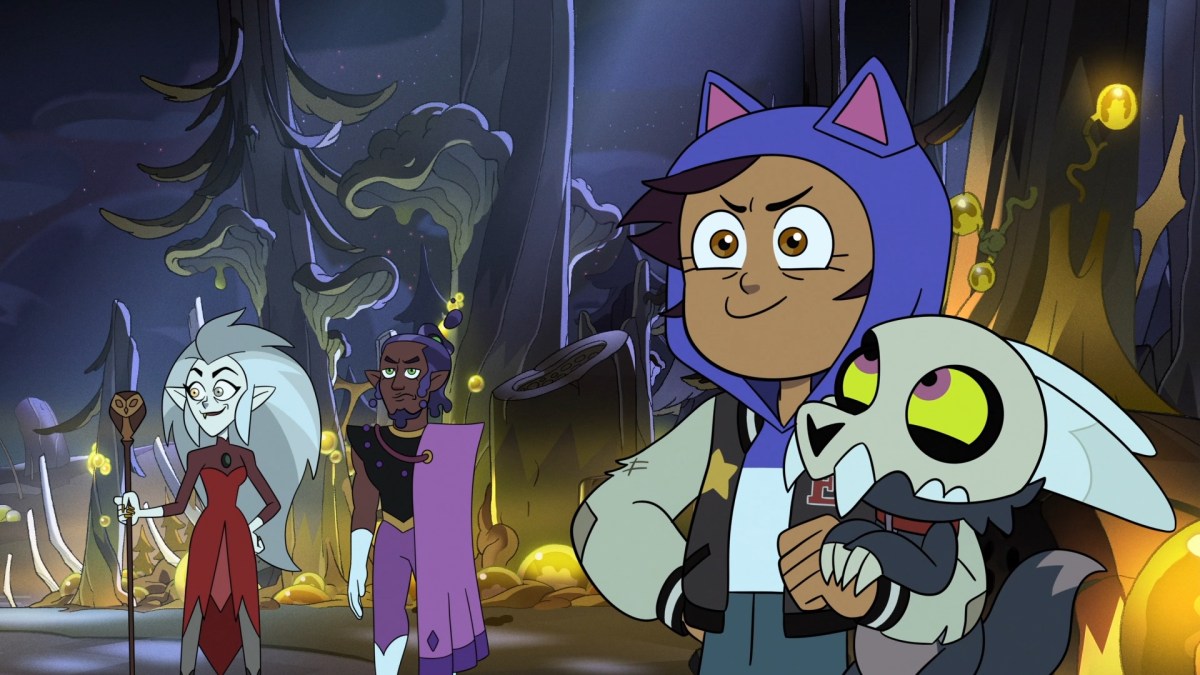 Eda asks why Raine didn’t fill her in because she could have helped. Raine responds saying they wanted to keep her safe, but because she’s Eda, she wasn’t going to stop until she made things right. Raine and the rest have come up with a plan to stop Belos. Before they can reveal it, Luz wants to make sure they have a cool rebel group name. In fact, they do! Raine says they’re The Covens Against the Throne. Aka The CATS. The group hisses together. Darius makes it known he didn’t agree to the name! Luz pulls her cat hoodie over her head and says everything has come full circle.