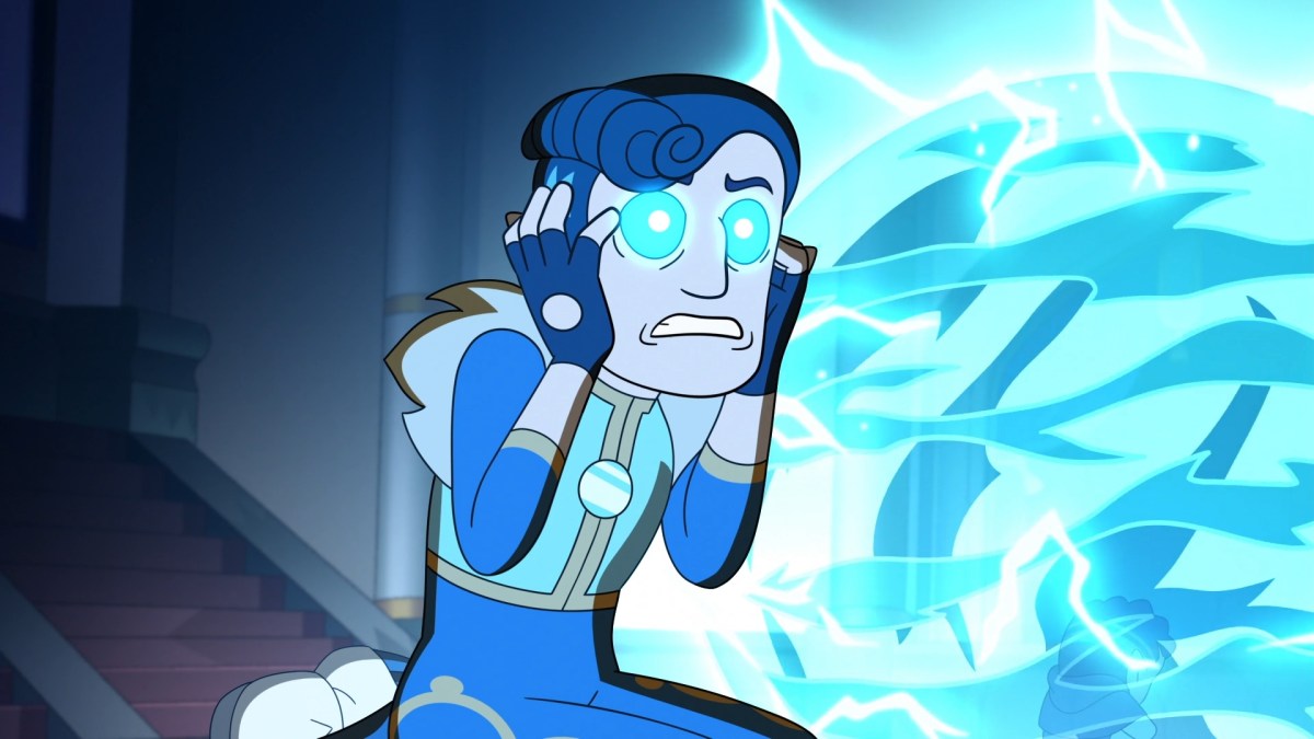 Gus and Hunter arrive in the real part of the school when they spot Willow. She calls Gus Augustus and seems off. Hunter realizes it’s an imposter. “Willow” acts scared and Hunter says Willow would never be afraid of him from their time in Flyer Derby. Suddenly Adrian calls cut again and the illusion ends. They try to escape but Adrian catches them. A fake Belos appears but it’s just two scouts hidden in an illusion. Hunter orders them to stop as their superior. Adrian reminds them that Belos wants the runaway and to tie him up. Hunter fights them off but is put under by a sleeping spell.