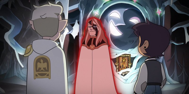 Luz wakes up in a hallway full of paintings. One depicts a battle between Belos and Eda. Behind Eda are depictions of Lilith shielding herself while Luz is reaching out to King. The words under the painting read “Triumph Over Wild Magic”. Suddenly Hunter’s voice comes from behind, blaming Luz for getting them trapped in the Emperor’s mind.